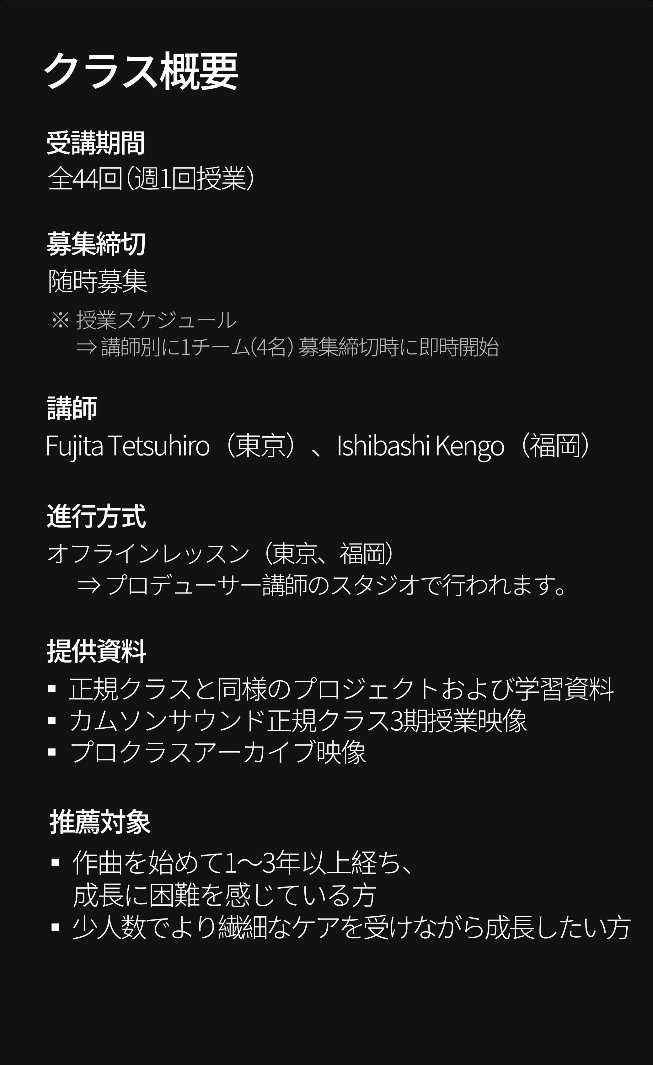 内線番号 | 1 - クラスに関するお問い合わせ 2 - 支払いに関するお問い合わせ 3 - 資料発送および技術チームへの接続 4 - マーケティングに関するお問い合わせ 5 - オペレーター接続およびその他のお問い合わせは カムソンサウンドのKAKAO・LINEチャンネルをご利用ください | ||