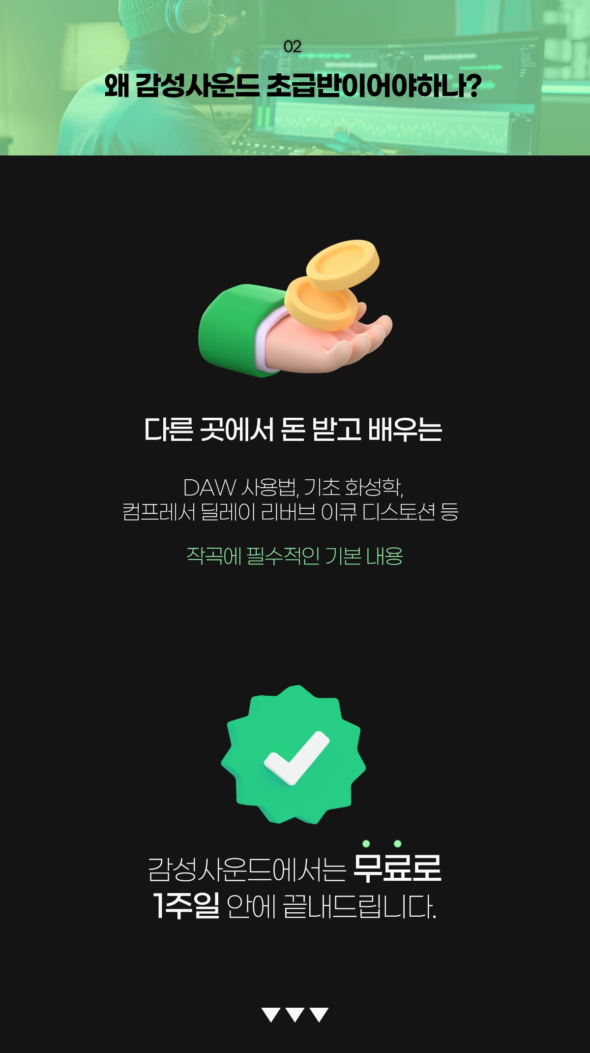 2주차 | DAW(큐베이스, 로직, 에이블톤) 기능 설명 • 사전 제공 자료 설명 • 실전에 사용하는 주요 기능을 직업 예시를 들어가며 하나의 클래스에 모두 담아낸다! |