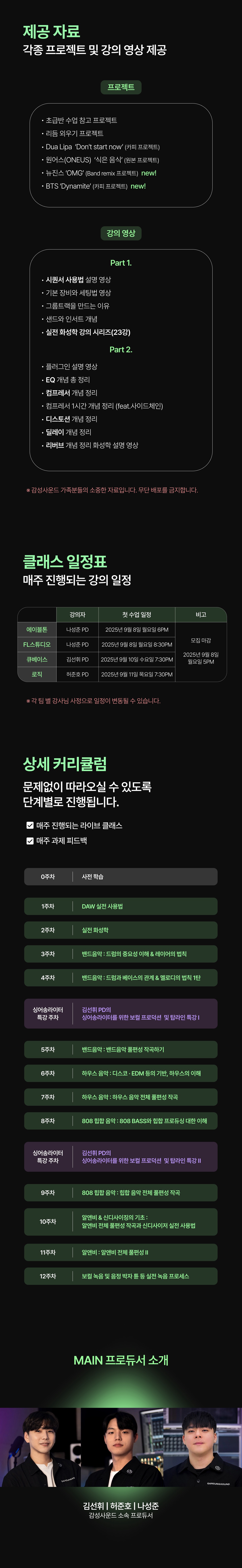 ※ 클래스 신청 시 큐베이스, 로직, 에이블톤, FL스튜디오 수업 모두 수강 가능