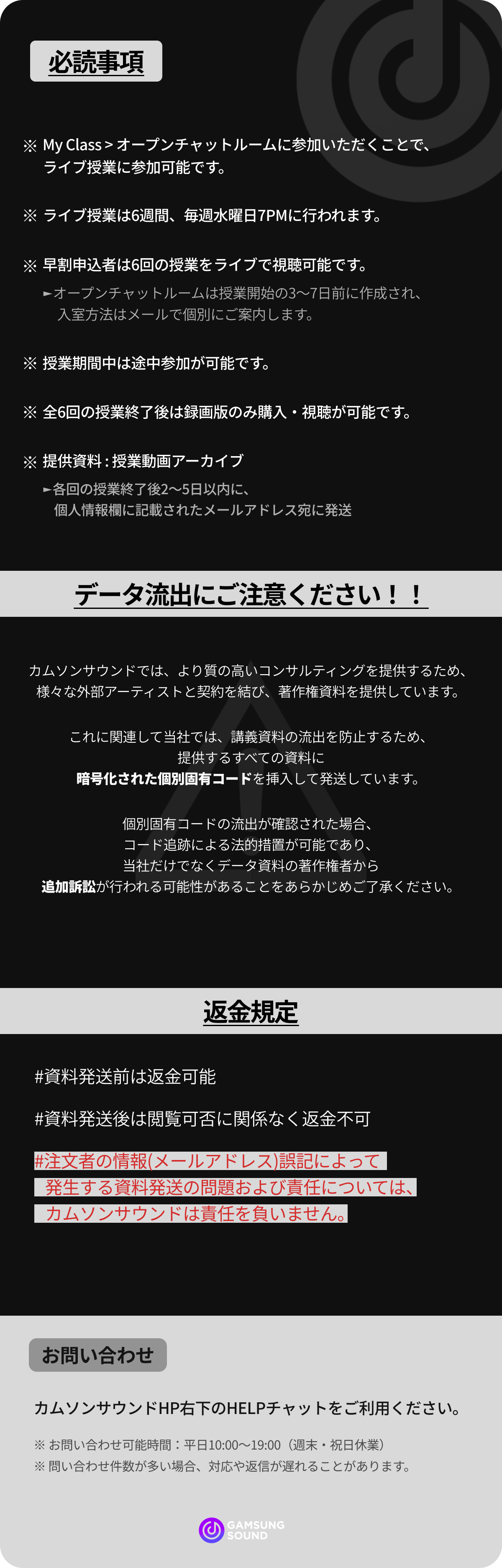 メールでのお問い合わせ | officecs@gamsungsound.com |