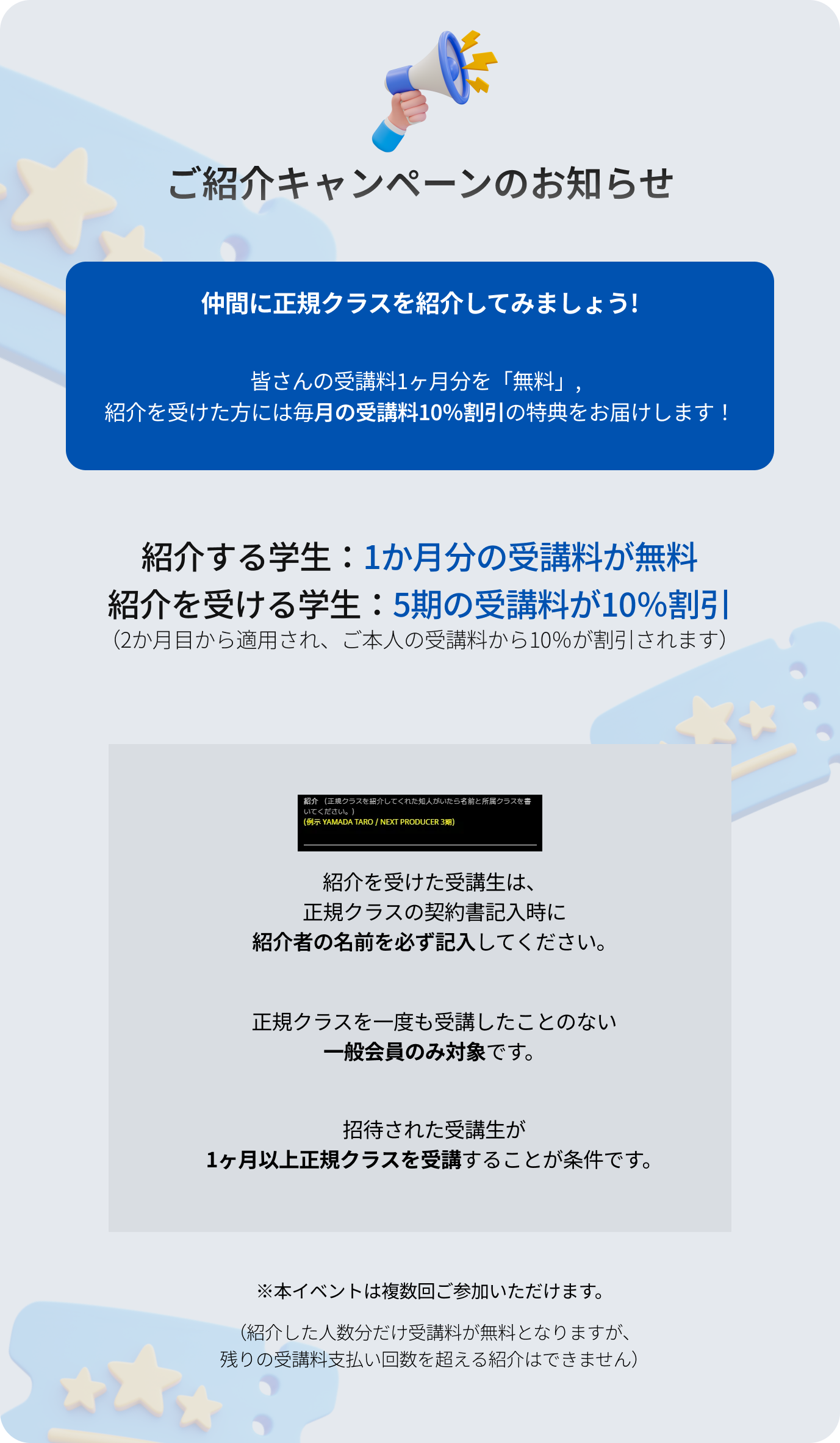 ► クラス開始前まで全額払い戻し可能(ただし、開始前に事前資料を受け取った場合は払い戻し不可)